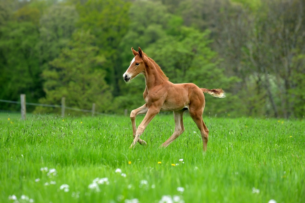 A 1 an, le poulain aura atteint 90 % de sa taille adulte.